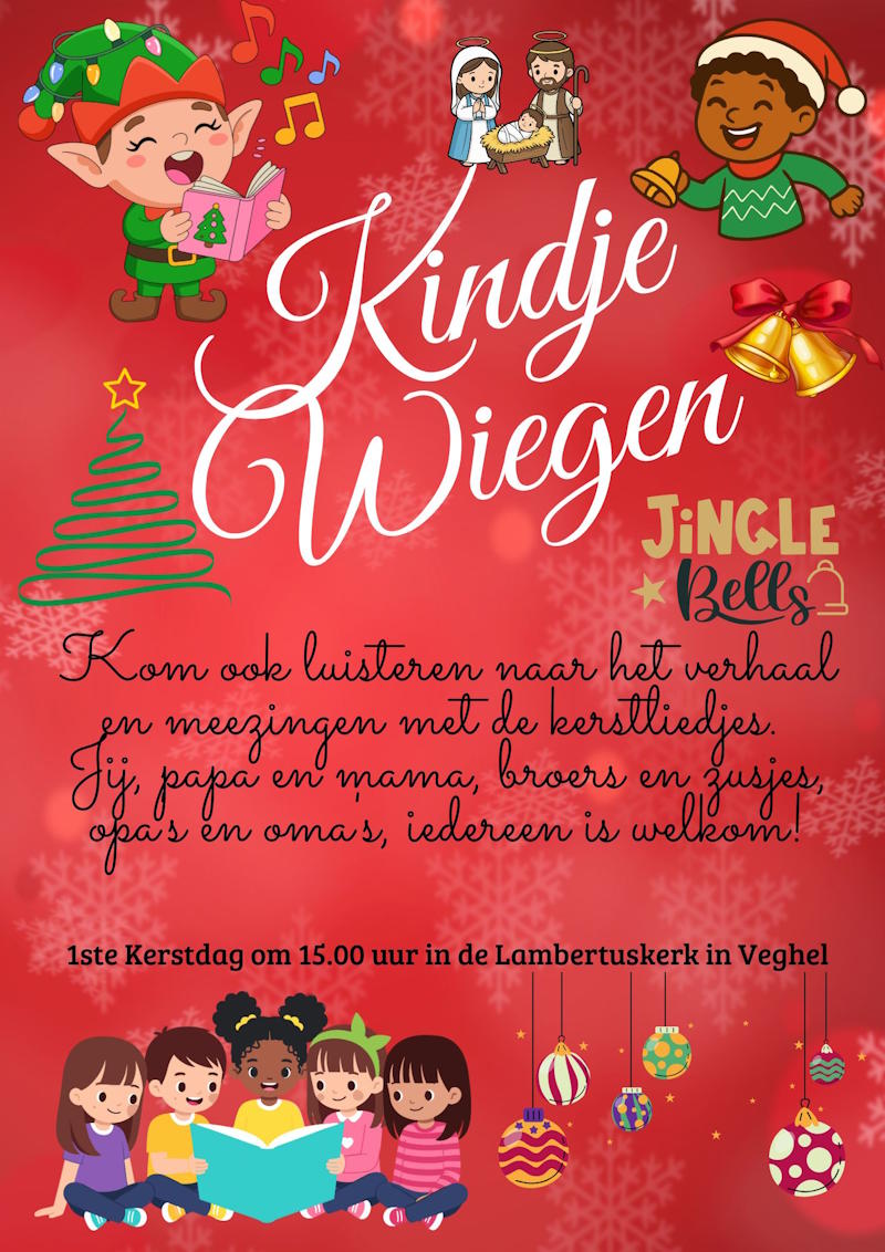 Op eerste kerstdag vieren we traditiegetrouw het kindjewiegen in de Lambertuskerk. In een warme en feestelijke sfeer luisteren we samen naar het kerstverhaal en zingen we vertrouwde kerstliedjes. Een prachtig moment van verbondenheid, rust en echte kerstvreugde voor vooral jong en oud.